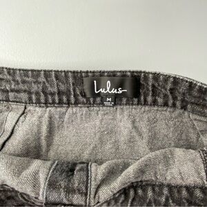 Lulus black faded denim button front flare mini skirt is women's size medium.