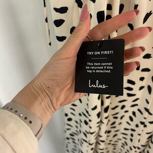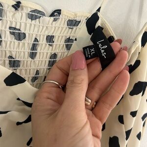 Lulus black white spotted print dress with shoulder ties size XL NWT