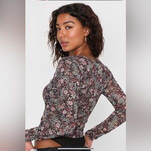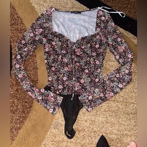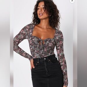 Lulu's irresistible Wonder Black Floral Print Mesh Keyhole Bodysuit