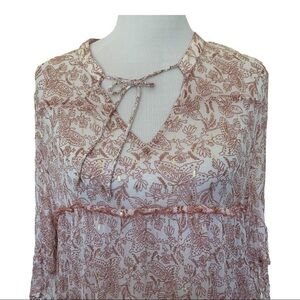 Chiffon bohemian Lulu cream and rust top with light gold metallic design. Approximate measurements 20” armpit to armpit 22” long please see photos for design details and ware.