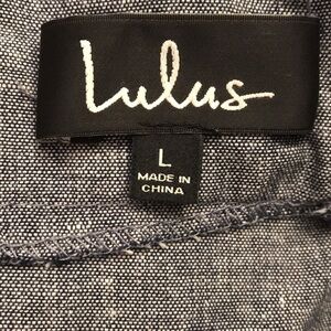 Lulus brand size L skirt. Cotton and linen. Zipper closure in back. Tie detail. Blue/ gray chambray fabric. Excellent quality. Excellent condition.