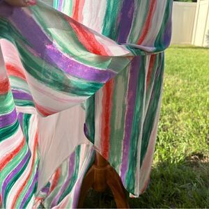 Lulu’s brushstroke of luck green multi stripe high low dress Sz S