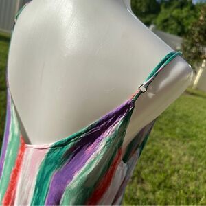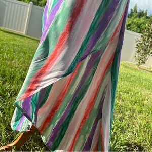 Lulu’s brushstroke of luck green multi stripe high low dress Sz S