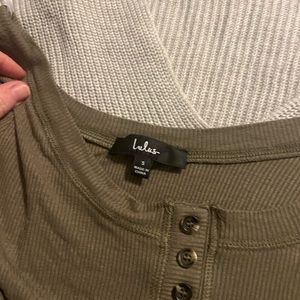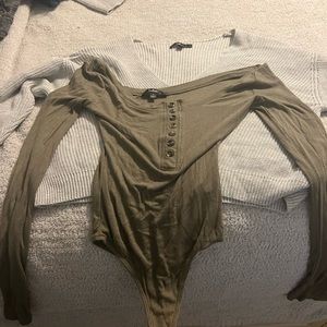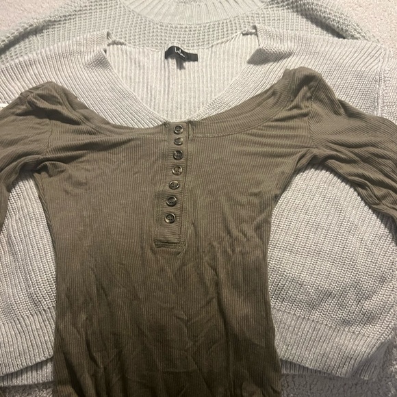 Lulus grey crop sweaters and 1 bodycon olive body suit. Never worn.