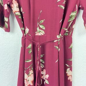 Lulu’s burgundy red floral short sleeve v-neck maxi dress size small