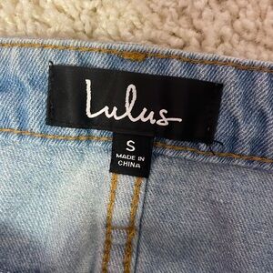 Lulu’s button front denim skirt in light blue wash size small. Perfect condition, hardly worn before growing out of it. A-line fit for a little room. Fabric has no pockets