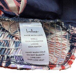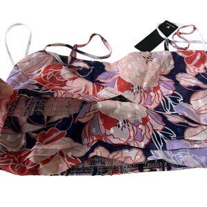 Lulu's Floating Through The Flowers cropped tank top, multicolor (navy blue, pink, purple, red) floral print, keyhole front, smocked back, adjustable straps, large, pit to pit: 17", new with tags