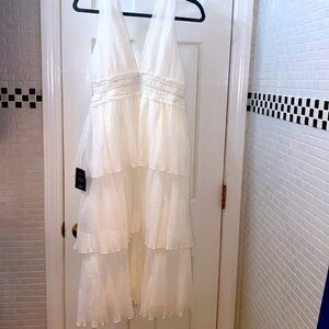 Lulus dreamy mood white Swiss dot tiered midi dress. Polyester. Size Small.