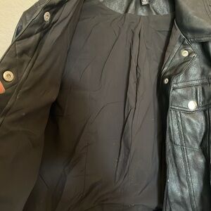 In great used condition. Button up jacket. Deep black. Shiny buttons.