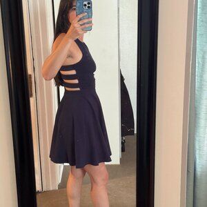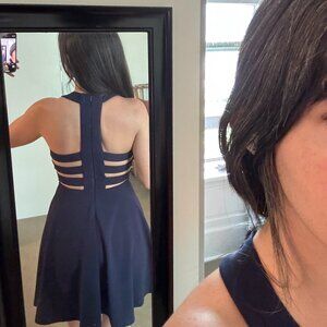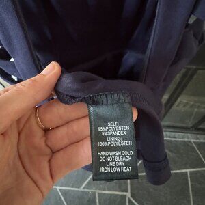 Business in the front, party in the back! (?) Super flattering fit & flare cut in true navy. Excellent condition, no sign of wear. 27-28" waist.