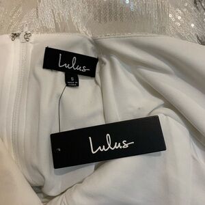 Lulu’s flirty backless sequin chevron skater dress, size small. NWT.