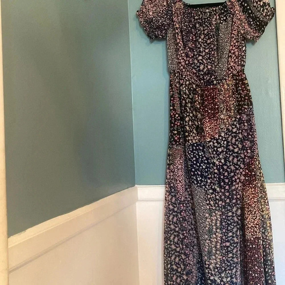 Lulus floral maxi dress- small- sheer with lining - front slit- short sleeve