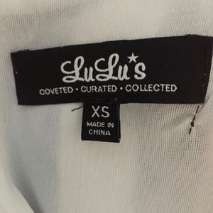 Nice LULUS dress. Shades of light and dark blue make up this cute geometric print sheath dress. Size is xs. measurements are: pit to pit 16"