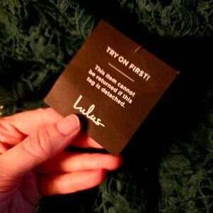 This Lulu's green lace mini dress is perfect for any special occasion! It is new with tags and in excellent condition. The dress is a size large and features a beautiful green lace overlay, a flattering silhouette, and a comfortable fit.