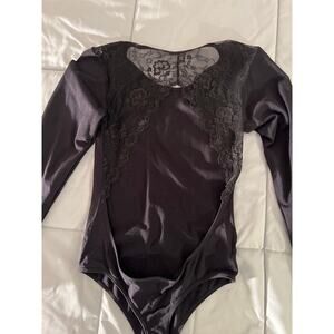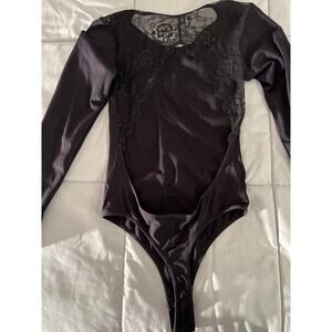 Lulus lace open back black bodysuit sz M/L 92% polyamide 8% elastane