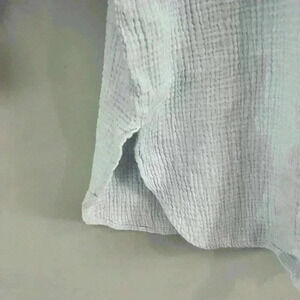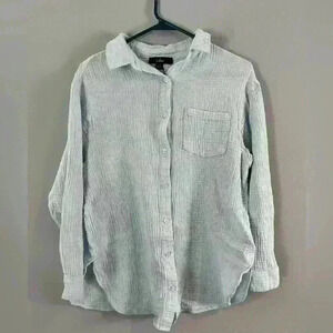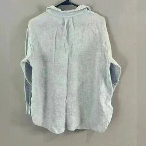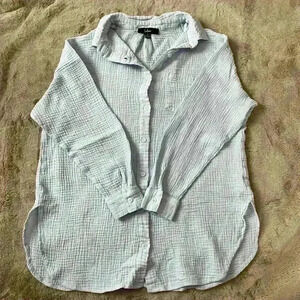 Baby blue color. Long sleeve with button cuffs. Full button down. Has a chest pocket.Slits on both sides. Rounded hemline. GUC. Soft with minimal stretch.
