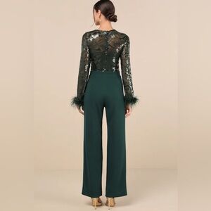 Lulus limitless radiance green sequin feather long sleeve jumpsuit sz S nwot