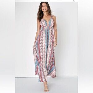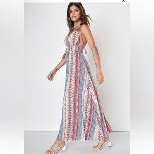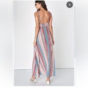 Lulu’s maxin’ relaxin’ multi print sleeveless tie back maxi dress size L