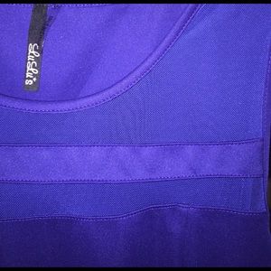 Lulu's navy blue/ purple dress (navy blue but looks purple under flash!). Has 2 sheer stripes at bottom of dress and is sheer above the chest. Size Medium. Has never been worn!