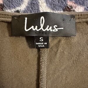 Lulu’s Twirl Power Olive green swing dress with pockets. Size small. Truly the softest material and very lightweight. Measurements and materials are shown in the pictures.
