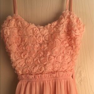 This dress is in absolute perfect condition only worn to try on one time, it was a little bit long on me. Size is XS brand is Lulus. The front is beautifully embellished with little pink flowers. The back tapers down into a V shape and has a string to tie around the back. Price is negotiable through the offer button