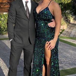 Lulus holiday sequins maxi dress with high slit.