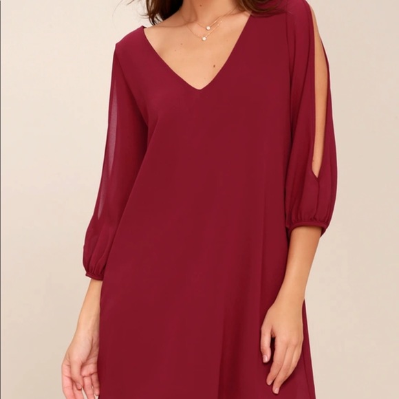 Short maroon Lulus dress with open sleeves Worn once!!!