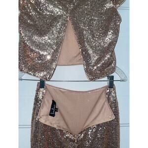 Lulu’s size Small Now and Forever Gold Sequin Two-Piece Maxi Dress Sexy Formal