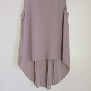 Beautiful dusty lavender colored high low sleeveless blouse by Lulu's in women's size medium. Has back button eyelet closure and pleated flowy back. When I got this it had come apart at the seam in the back of the neckline and I repaired it. Good as new and can't be seen while wearing it anyways. Never been worn.