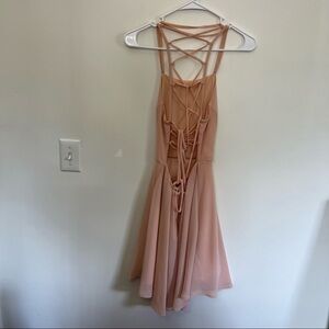 Fitted waist flares into a flirty skater skirt, hidden back zipper