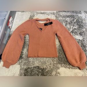 Lulus brand new sweater. Has a semi open back. Size xs more like a rust color, perfect for fall.
