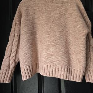 One More Heather Blush Cable Knit Mock Neck Sweater