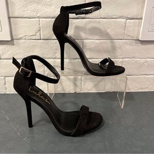 Lulu’s sz 7 black velvety strappy tall heel sandals