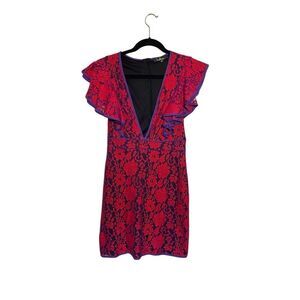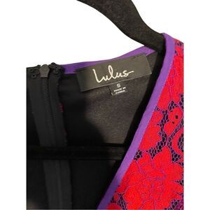 Lulu’s under the stars, purple and red lace Ruffle mini dress size small