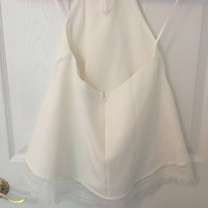 This top has never been worn. It's from Lulus and is a nice thick fabric so you could get away without wearing a bra. It has a delicate fringe detail on the bottom and has a trapeze bodice. The tie in the back has tassels on the ends of the string which is a cute added detail.
