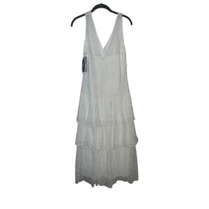 Lulus white plunge dress sz l lace tiered elegant avant garde castal nwt