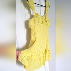 Gorgeous Lulu's yellow summer dress. Excellent condition. Like new. No flaws. Its so beautiful on. Fitted in the waist and then flows out slightly at the thighs and above the knee.