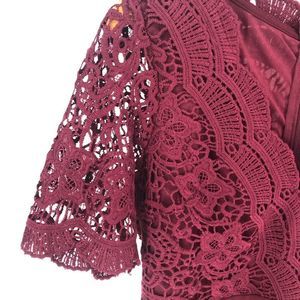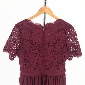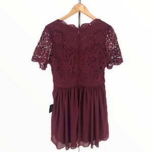 Lulu’s Angel in Disguise Burgundy Lace Skater Dress Short Sleeves size Large NWT