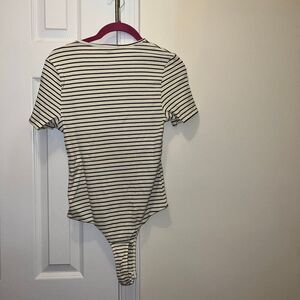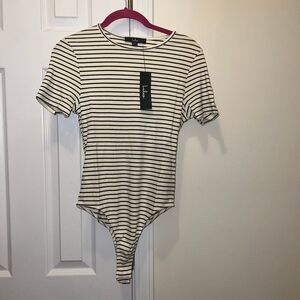 Lulus Black and White Striped Ribbed Bodysuit, Size Medium (2A)