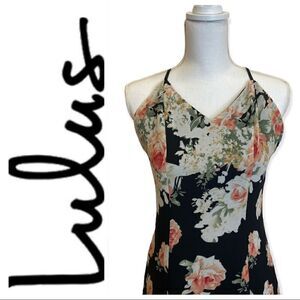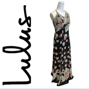 Lulu’s Black Floral Print Maxi Dress Size XS