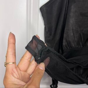 Front v neck lace detail. Adjustable straps. Snap button closure.