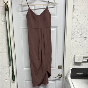 Lulu's Brown Asymmetrical Pleated Wrap Dress NWT Size Medium 💚