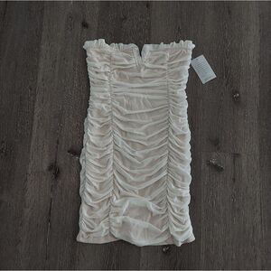 Lulu's Do the Most White Ruched Mesh Strapless Bodycon Mini Dress Small