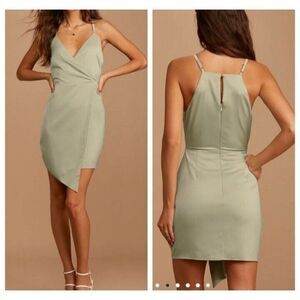 Lulu's Dress Green What a Stunner Sage Green Satin Mini Dress Size Small
