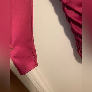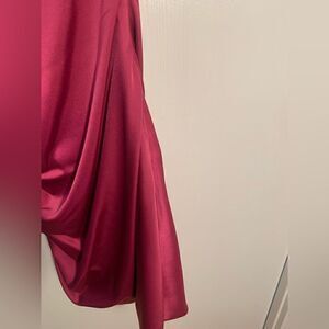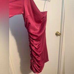 Lulu’s EUC fuschia one sleeve ruched side hem dress Size Small