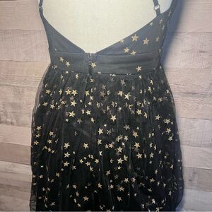 Lulus Favorite Moment Black & Gold Star Print Backless Skater Dress