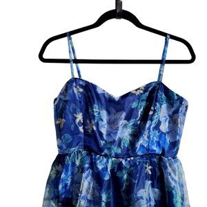 Lululemon Floral orgaze blue floral tiered mesh overlay adjustable spaghetti strap bone corset sweetheart neck nwt zip back maxi dress 36" bust 40" waist 60" long