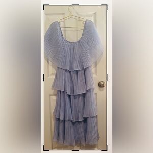 Stylish off-shoulder dress with a light blue gingham pattern. Ideal for casual outings or a night out. *New Without Tags.