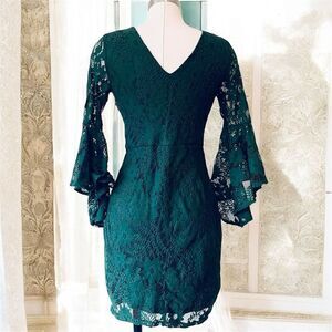 Lulus Green Bell Sleeve Lace Mini Dress Bodycon Medium M Formal Prom