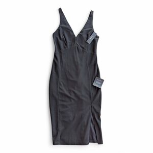 Lulu's Iconic Black Column Pencil Midi Stretch Dress Side Slit Women's sz S NWT